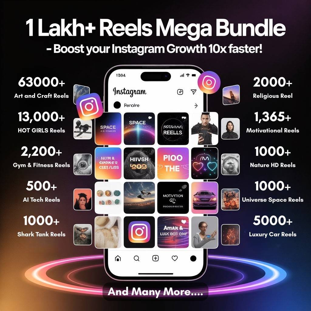 🔥 Unlock the Ultimate Reels Collection that will skyrocket your Instagram reach, boost engagement, and help you gain thousands of followers FAST! Whether you’re a creator, influencer, or business owner — this 1 Lakh Reels Bundle gives you ready-to-post, trending, and viral-quality content across multiple niches.
